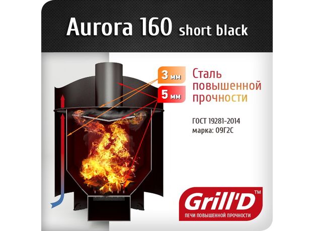 Печь для бани Grill'D Aurora 160 Short со стеклом