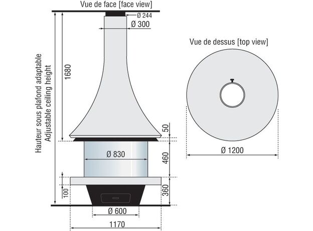 Камин Bordelet Eva 992 Центральный со стеклом
