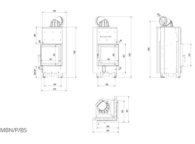 Каминная топка Kratki MBN 12 R/BS