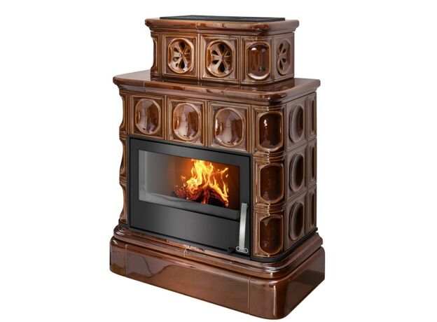 Печь-камин ABX Karelie P коричневая с кафельным цоколем