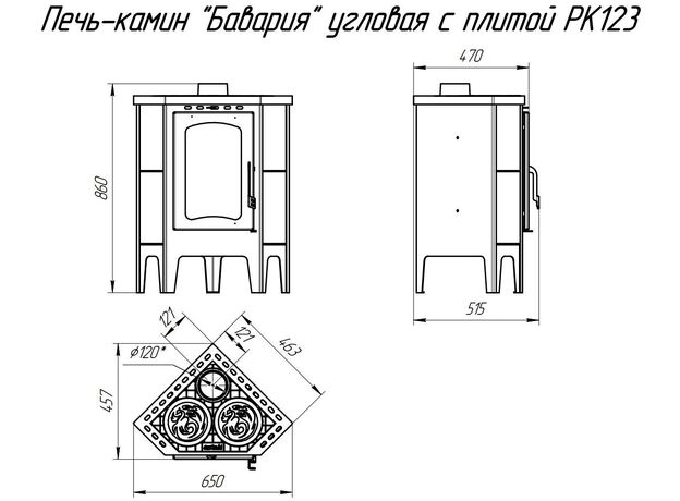 Печь-камин EcoKamin Бавария Угловая с плитой