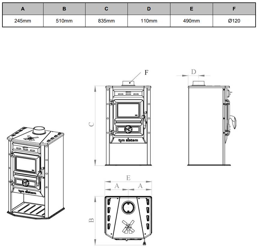 Диаметр дымохода:
