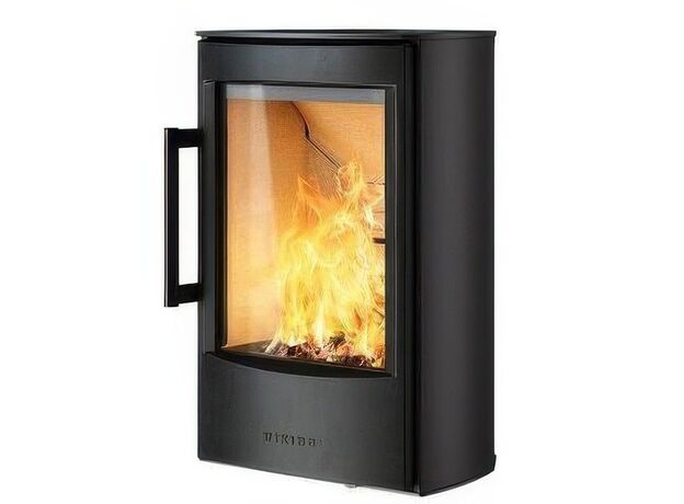 Качественная скандинавская печь с большим стеклом и умеренной мощностью.